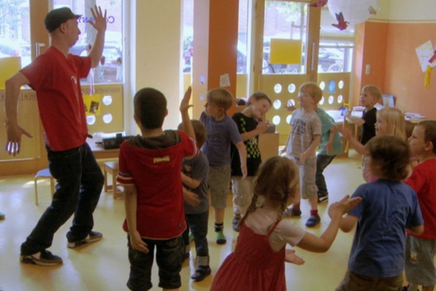 Er arbeitet nebenbei an einem Hip-Hop-Album für Kinder. Sprechgesang – witzig, kindgerecht und frech! Ein musikalisches Experiment, das bisher niemand gewagt hat. Zusammen mit den Kita-Kids dreht er ein Musikvideo auf dem Spielplatz und nimmt die kleine Ida aus dem Kindergarten mit in sein Tonstudio – eine wilde Woche im Kindergarten beginnt.